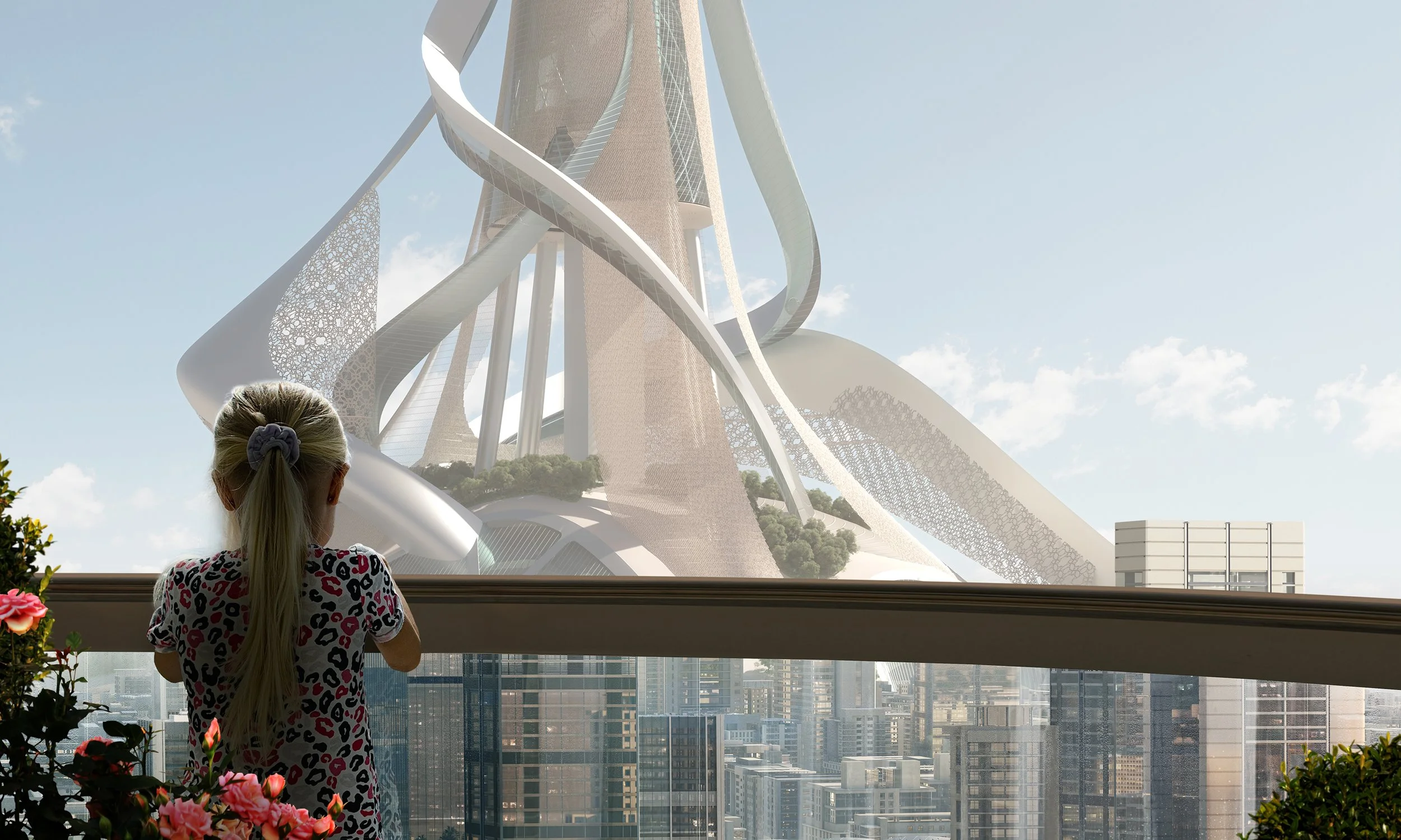 Lumenis is a visionary 2,000 metre tall vertical city designed as a landmark project aligned with Saudi Arabia’s Vision 2030. Housing over 20,000 permanent residents and welcoming up to 30 million visitors annually, the supertower blends sustainability, technology, and cultural heritage into a singular urban form.